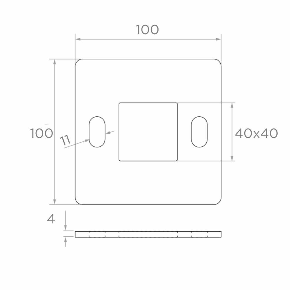 - Dimensioni base: 100 × 100 mm